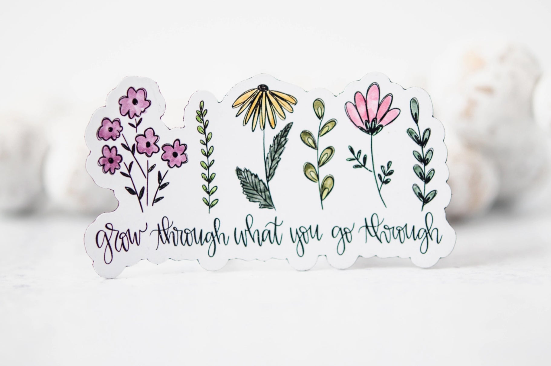 Grow Through What You Go Through, Floral 3"x3" Magnet