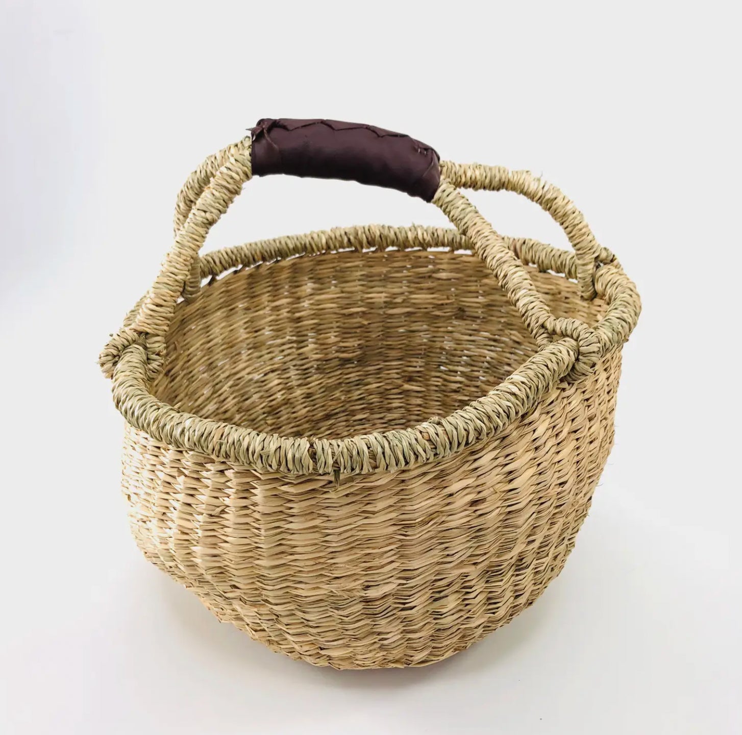 Handmade Handwoven Natural Seagrass Boho Bolga Basket