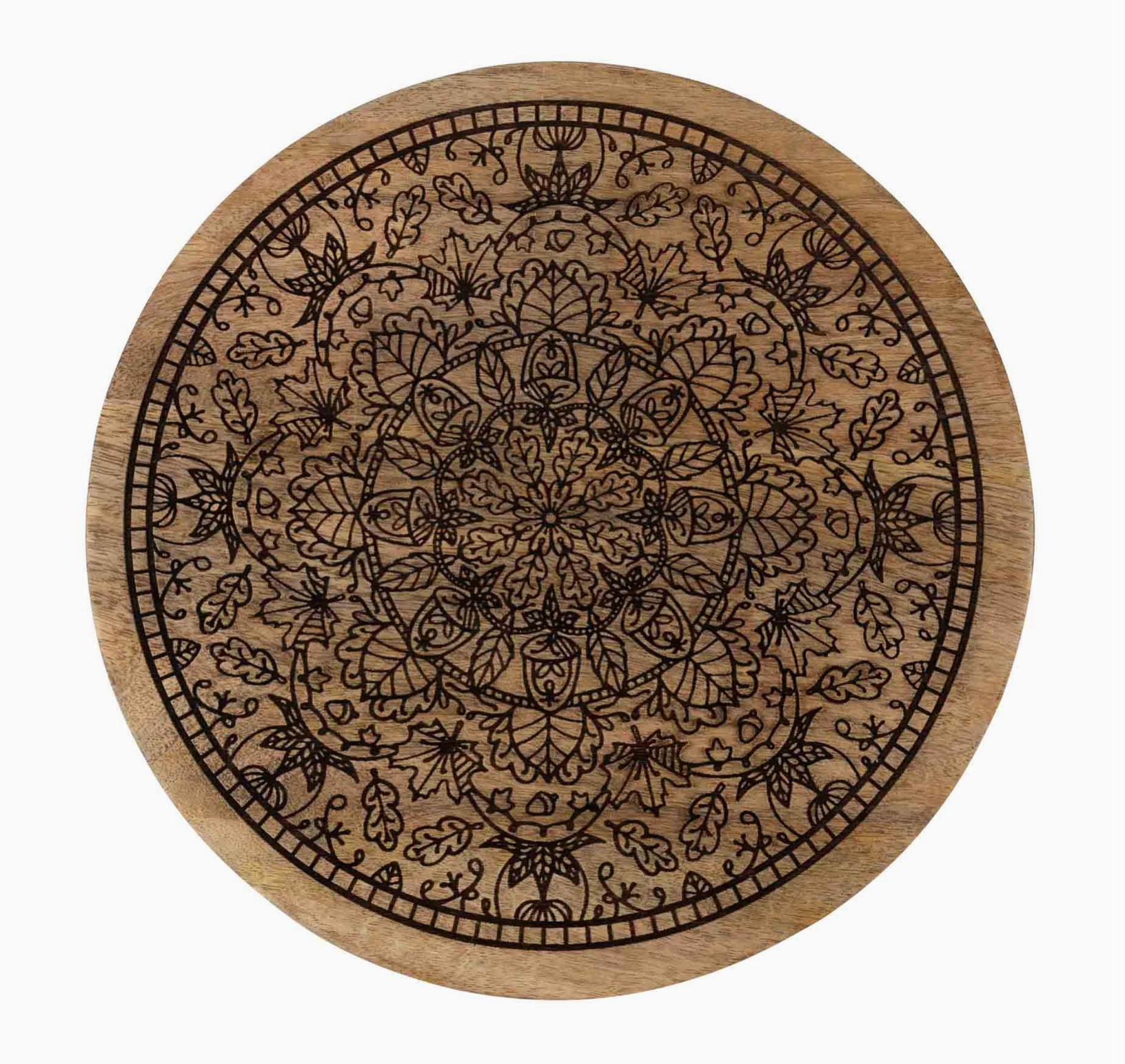 Entertaining, organizing, keep items within reach with the sustainably handcrafted mango wood Mandala Wooden Lazy Susan.
