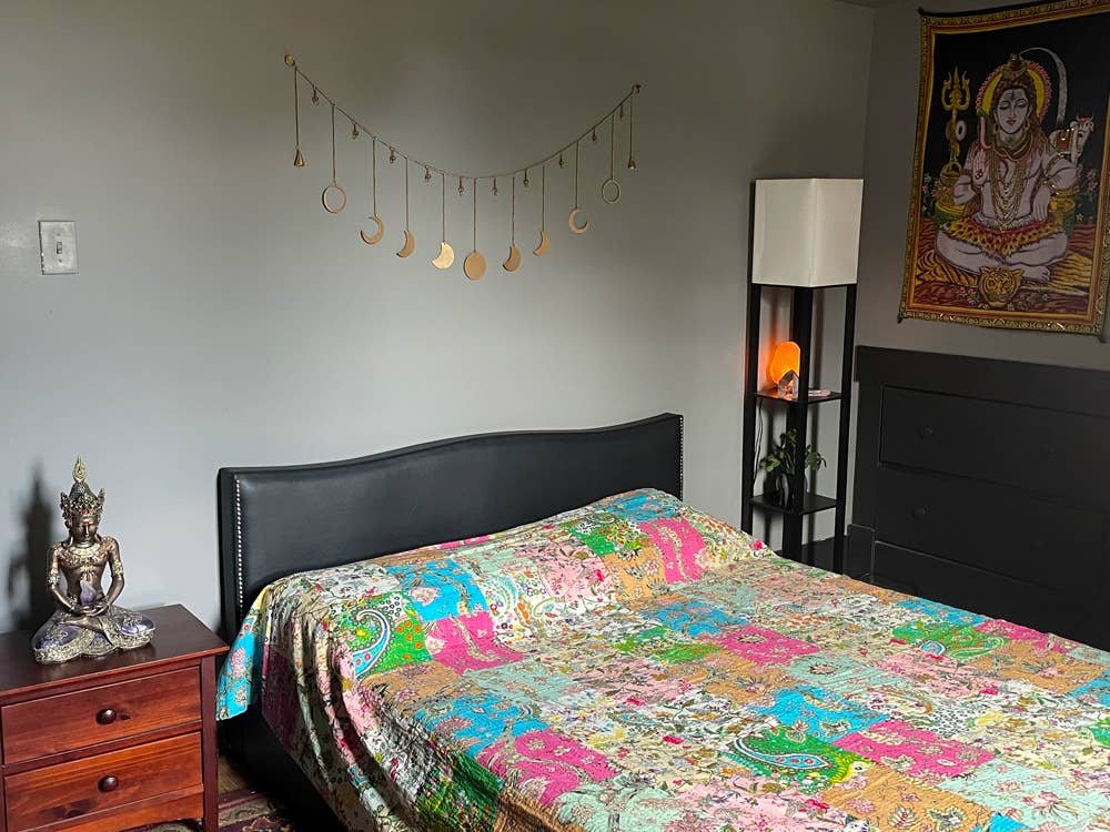 Our moon garland is a stunning decorative piece featuring the phases of the moon, intricately crafted from up-cycled metal with a radiant gold finish. Each lunar phase is linked together to form a beautiful, celestial display that adds warmth and elegance to any space. Perfect for walls, windows, or meditation areas, this eco-friendly garland combines sustainability with timeless cosmic charm.