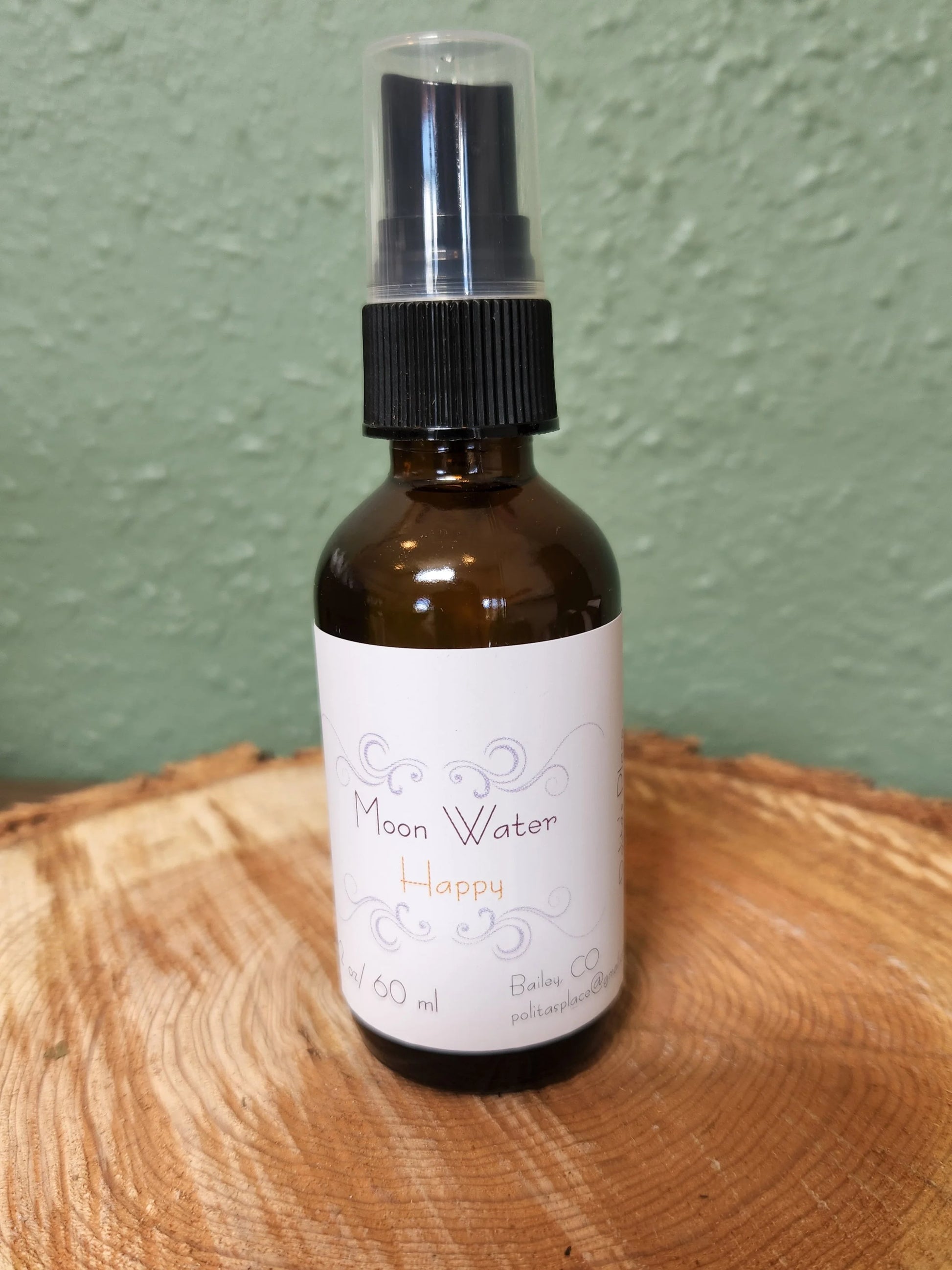 Contains distilled water & crystal charged from the full moon, witch hazel, fractionated coconut oil, sweet orange, lemon, lemongrass, bergamot & pepper essential oils + love.