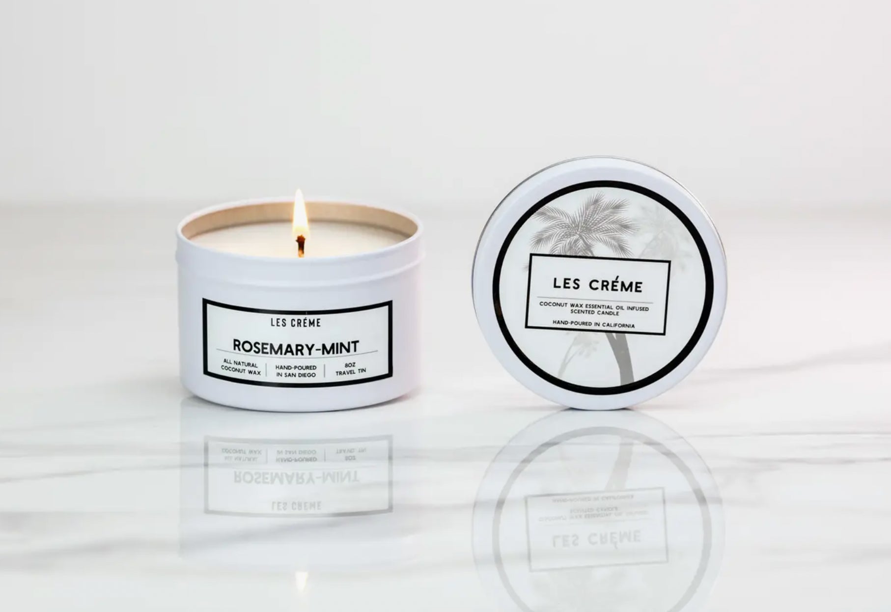 This organic coconut wax candle by Les Creme is infused with natural essential oils, including Rosemary and Peppermint .